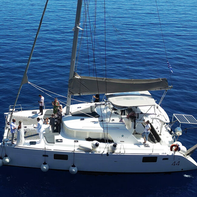 5 Hour Santorini Yacht Proposal – Private Catamaran Sailing Yacht – Sunset & Morning Options! With our Exclusive partnership with Santorini’s Number one Proposal Planni