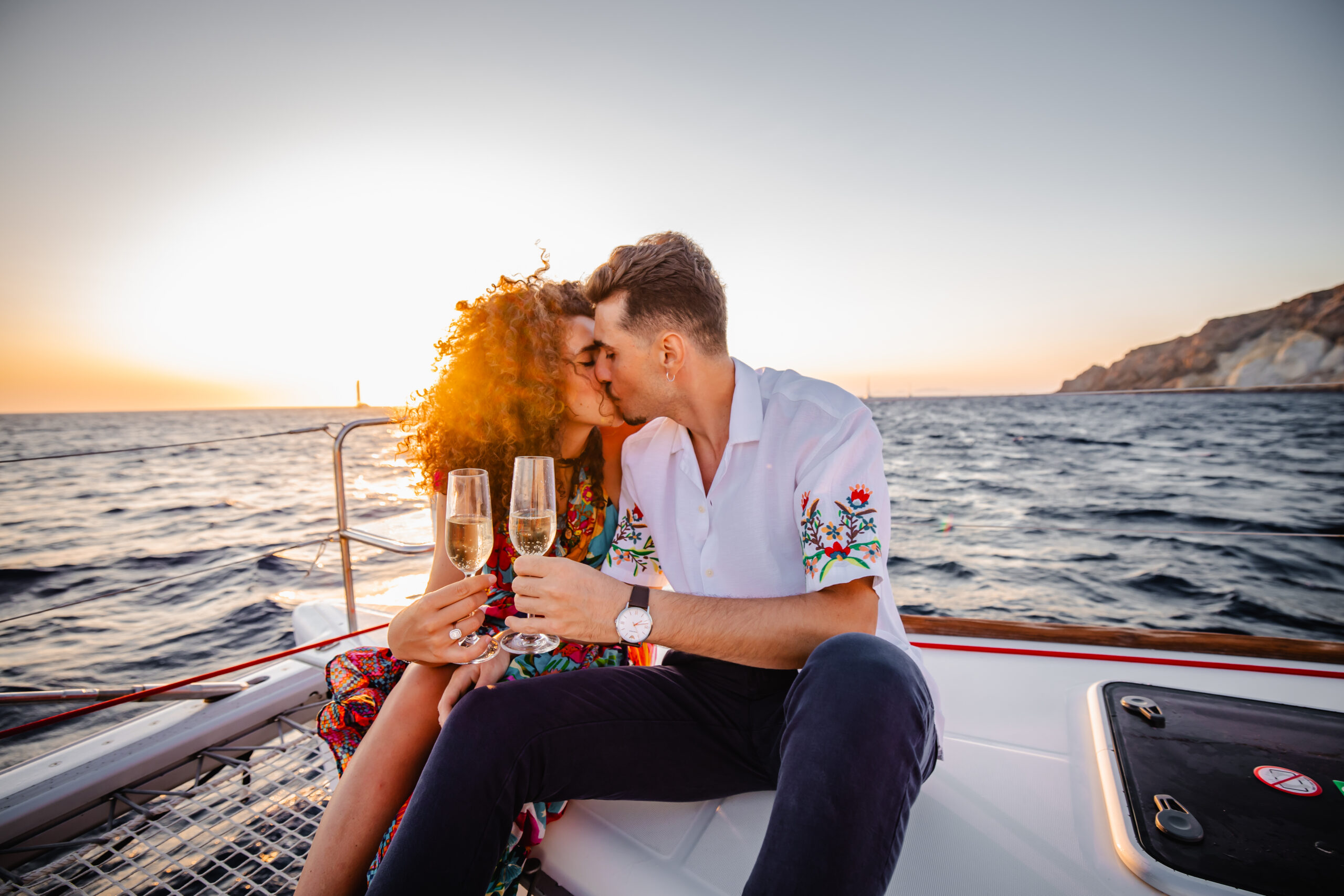 5 Hour Santorini Yacht Proposal – Private Catamaran Sailing Yacht – Sunset & Morning Options! With our Exclusive partnership with Santorini’s Number one Proposal Planning
