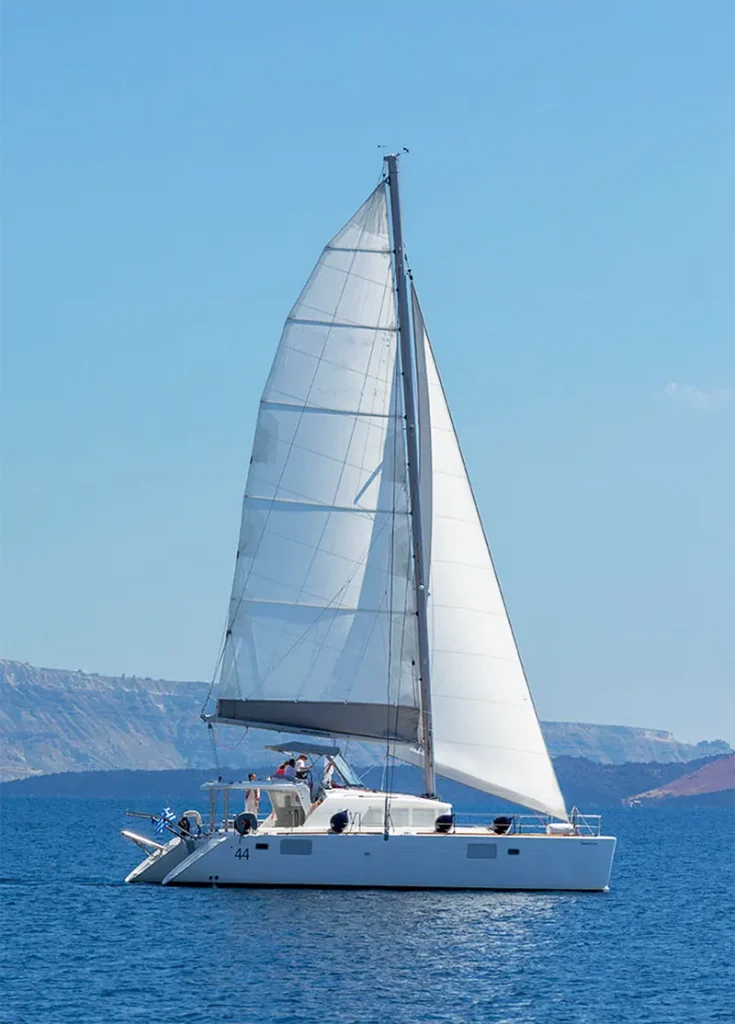 Experience Serenity and Beauty at Mesa Pigadia: Santorini's Hidden Gem for Catamaran Sailing Embark on a journey of tranquility and exploration with our exclusive catamaran sailing tours in Santorini, where the crystalline waters of Mesa Pigadia beckon with their pristine beauty. Tucked away from the bustling crowds, Mesa Pigadia is a secluded haven known for its azure waters and rugged cliffs, offering a serene escape for discerning travelers. Setting sail from the enchanting port of Santorini, our expert crew will guide you on a voyage of discovery through the breathtaking landscapes of the Aegean Sea. Feel the gentle breeze in your hair as you cruise along the coastline, soaking in panoramic views of the island's iconic caldera and charming villages perched atop volcanic cliffs.